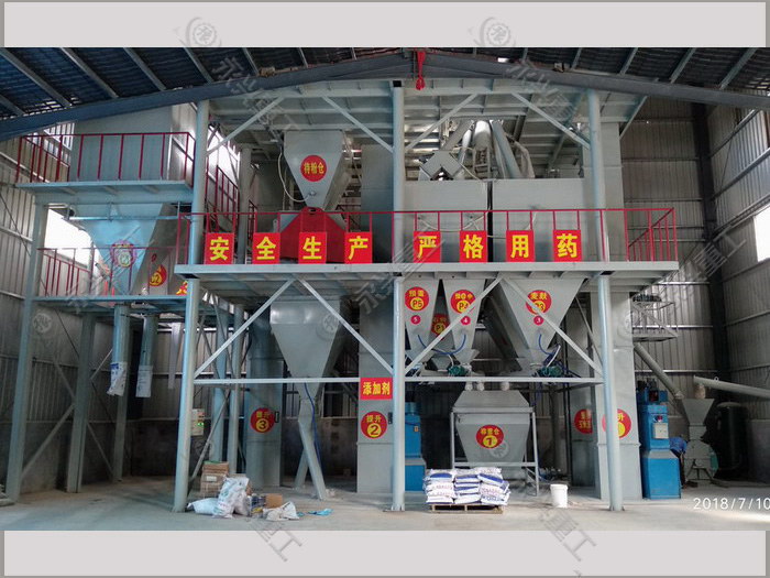 2.工藝流程由投料、配料、輸送、粉碎、提升、混合、包裝等工序組成。工藝流程連續合理,各單機性能良好,操作維護方便。